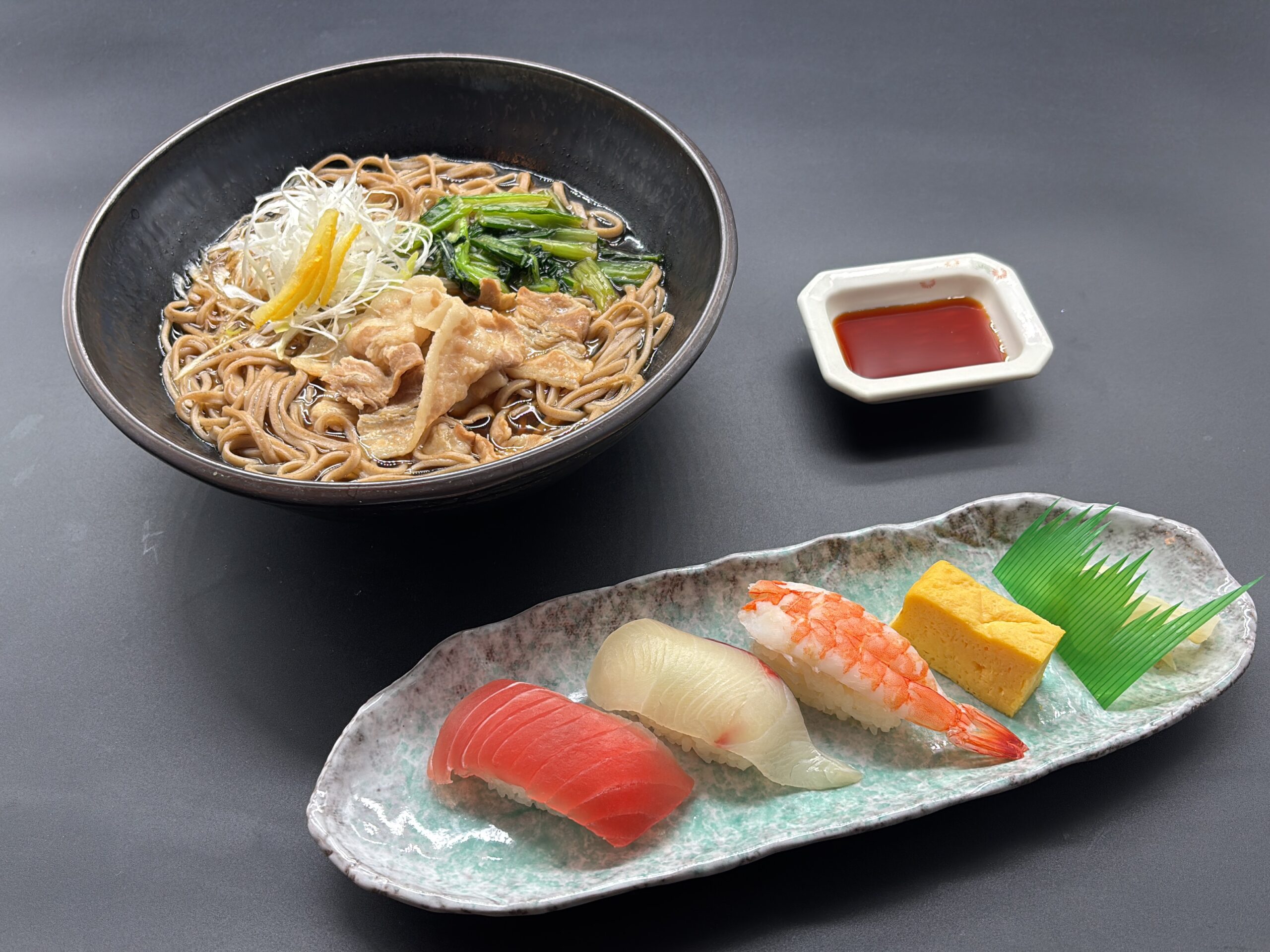 握り寿司とセットにした贅沢なメニューです。